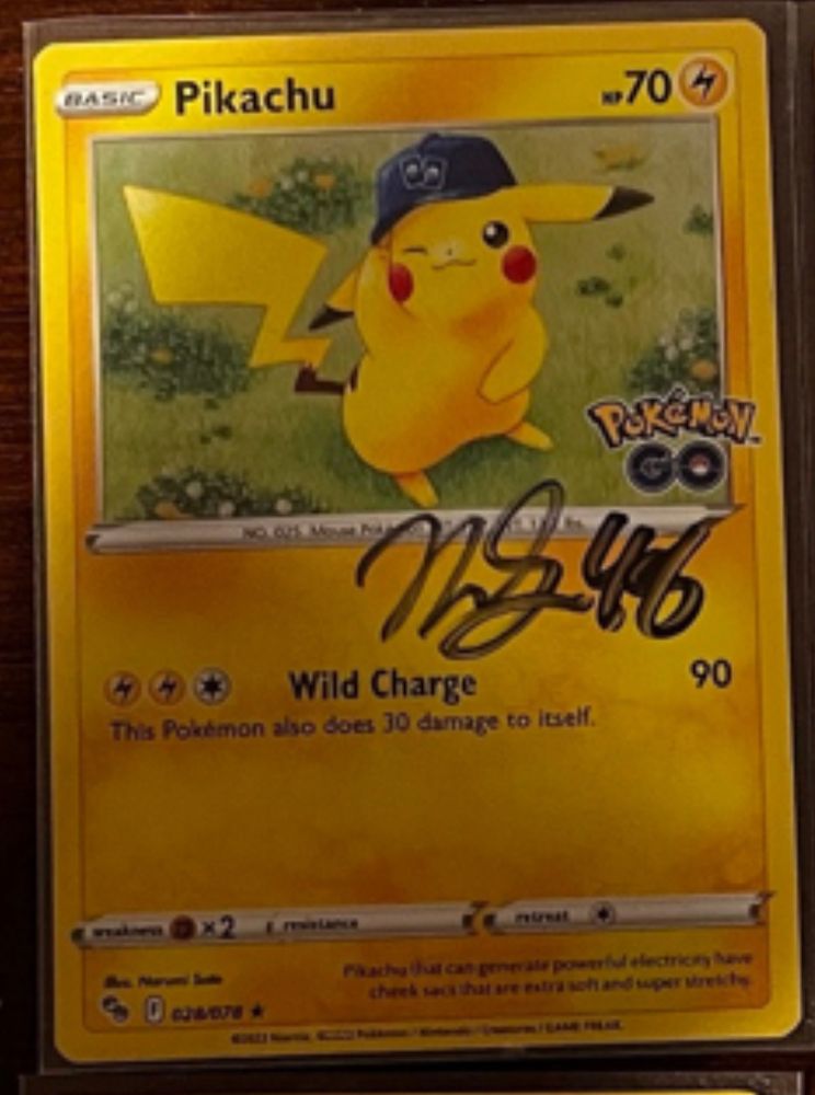 the holo pikachu i got signed by matthew schaefer, or maybe the calvin de haan signed puck i got from winning an nhl network twitter contest lol