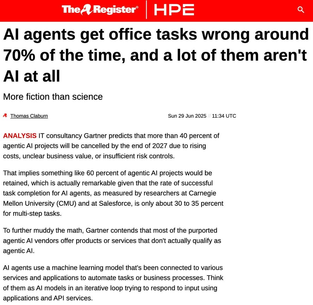 Agentes de IA se equivocan en tareas de oficina ~70% de las veces.
