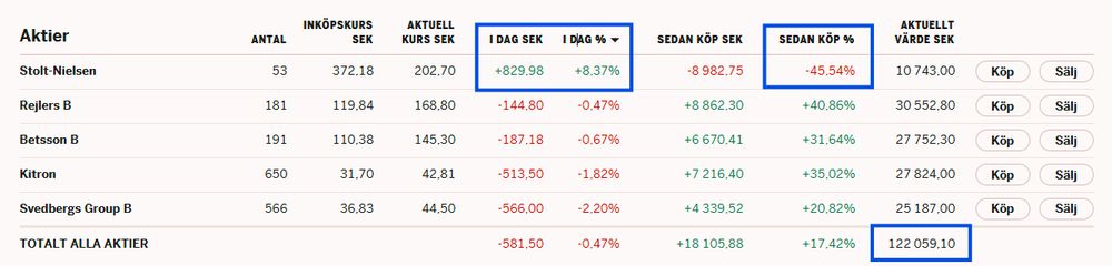 Sorgebarnet som är -45% från inköp är +8% en dag som denna :)