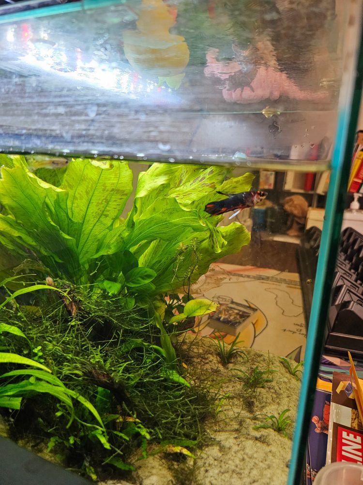 Cherry barbs immediately recognized the raw shrimp as food. The angelfish were confused and did not partake. Maybe they could be conditioned in the future to accept it.