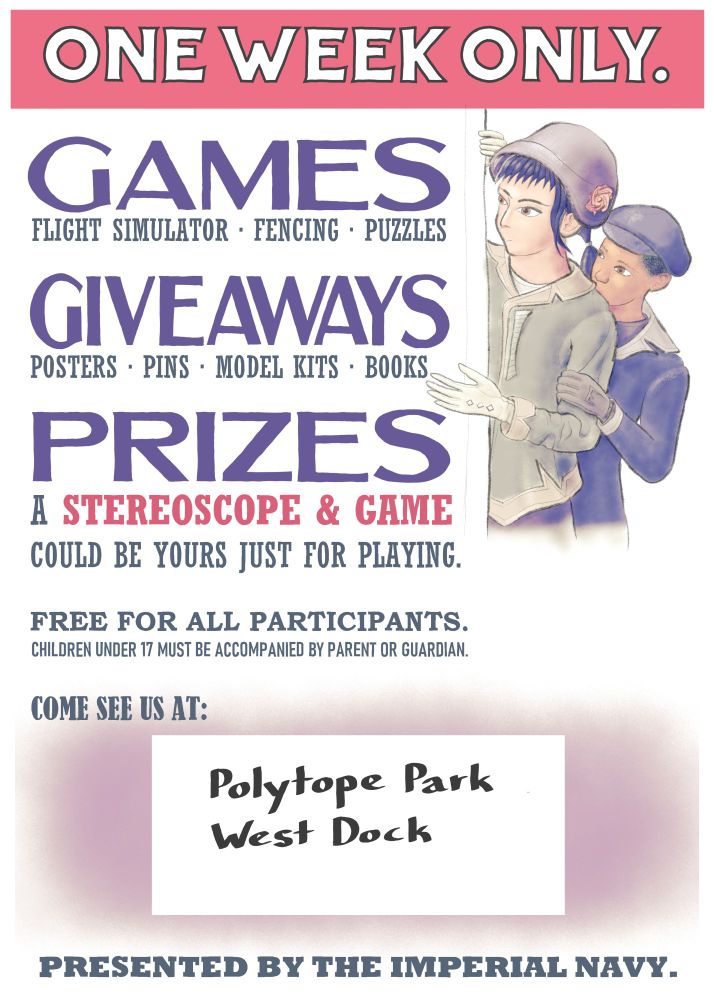 While it's supposed to feel vaguely late 19th century, there are many, many ways in which this is completely inaccurate. Which is very much on purpose, though I guess I should start to think about standardizing the ways in which these posters I'm making are not at all historical