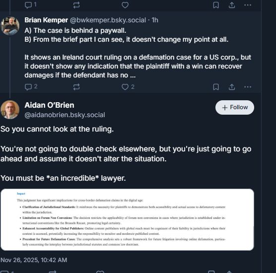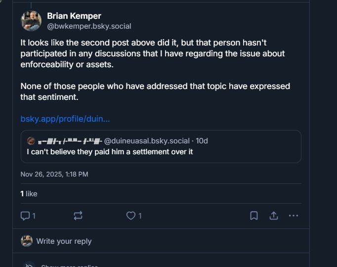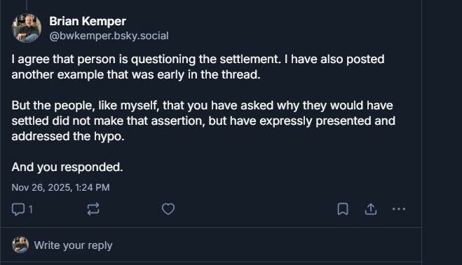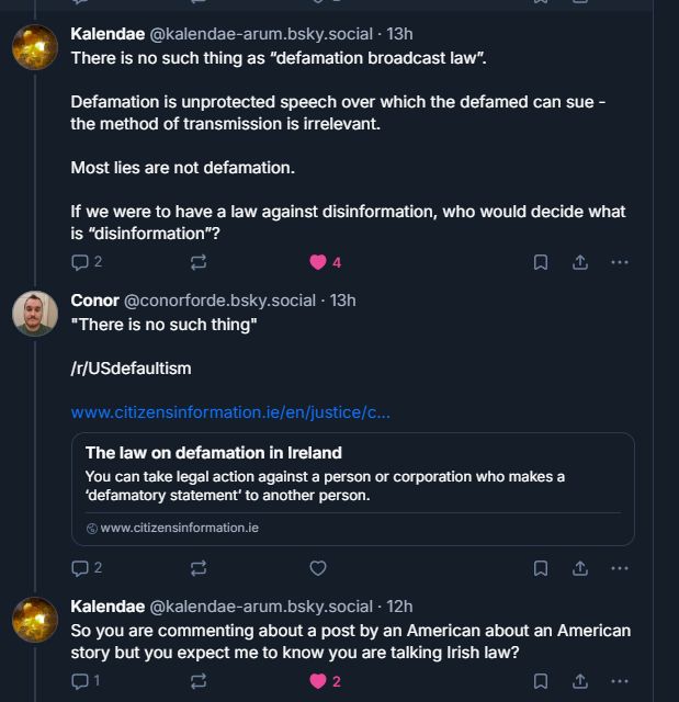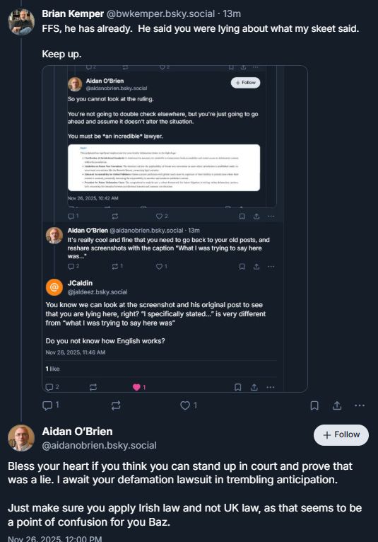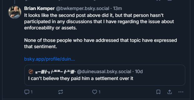 I was responding to your skeet re: the threat of defamation, which I didn't make. Caldin did.
