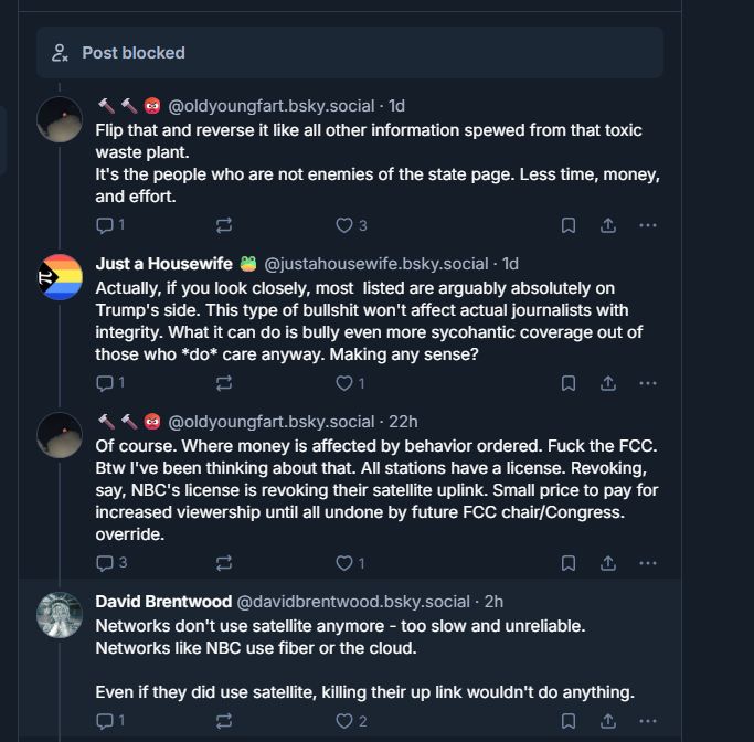 The reason you can't see it is because you follow me and because I am blocked from that post, so you are you (at least in this feed) ...