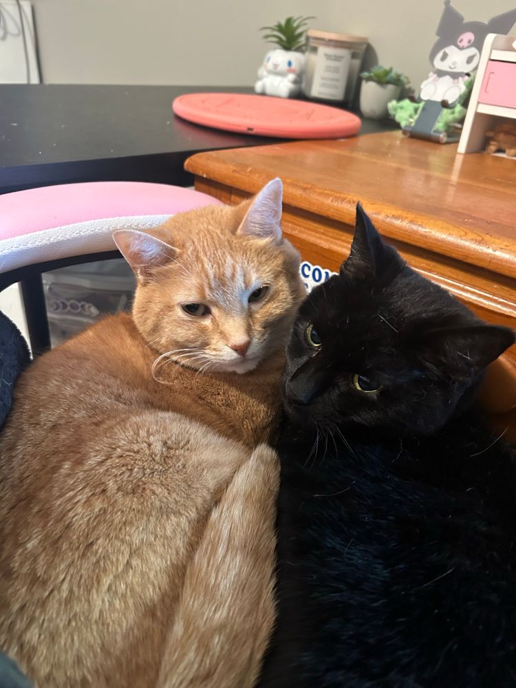 Pls look at my gay cats who insist on snuggling together