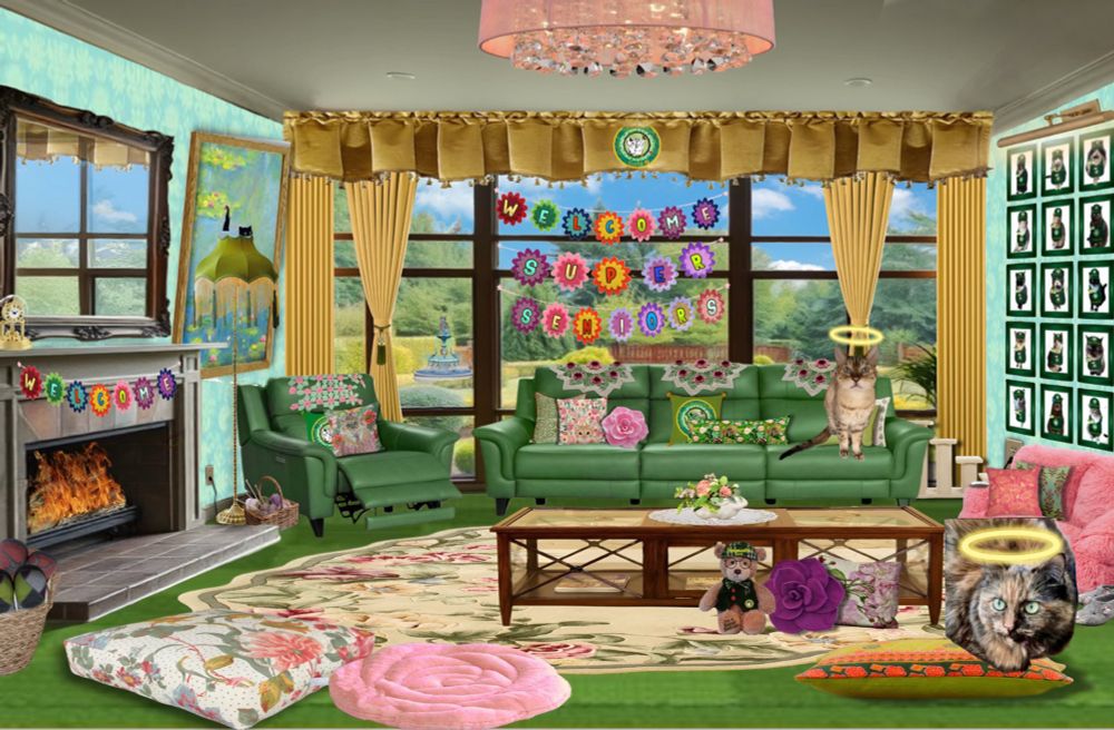 Angel Freddie has been checking his picture is up on the wall, he’s come down early for the #SuperSeniorCatClub party at the #HWCafe