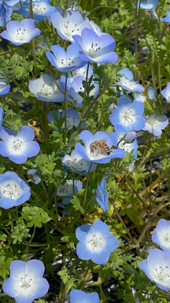 地域有志の方々がお世話されている小道のネモフィラにミツバチがいてちょっと感動🥹