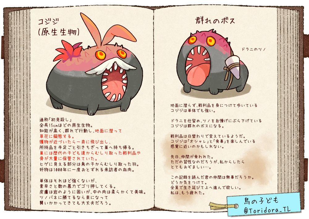 どこか不気味な第二階層に置いて、不気味さに拍車をかけている住民達。外見がぬいぐるみだからか、彼らだけ異様にメルヘンだ。どの住民も不思議と親切である。数え切れないほど沢山いたので、リーダー的存在と、そのなかよし達を抜粋して記す。