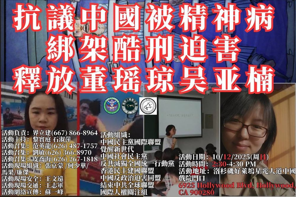 9月13号,本周日下午2点,洛杉矶中领馆,抗议中国政府停止迫害中国的民主人士、政治异议人士。