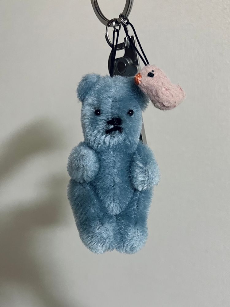 私はくまのキーホルダーを使っている。市販の小さなマスコットのキーホルダーをずっと使っていたけど落とした時に気づかなかったことがあったので大きめのマスコットを作って使ってる。