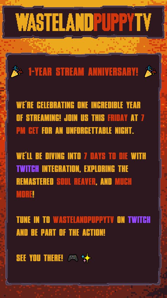 7 PM CET on twitch.tv/WastelandPuppyTV. Set your alarms—don't miss this! 📅
