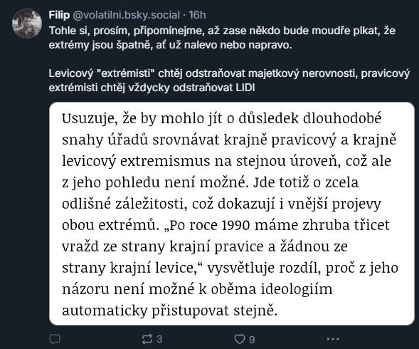 A protože levicový hrdina svůj post z mé citace odstranil, tak tady je screen pro ty, kteří nevědí, o čem je řeč...