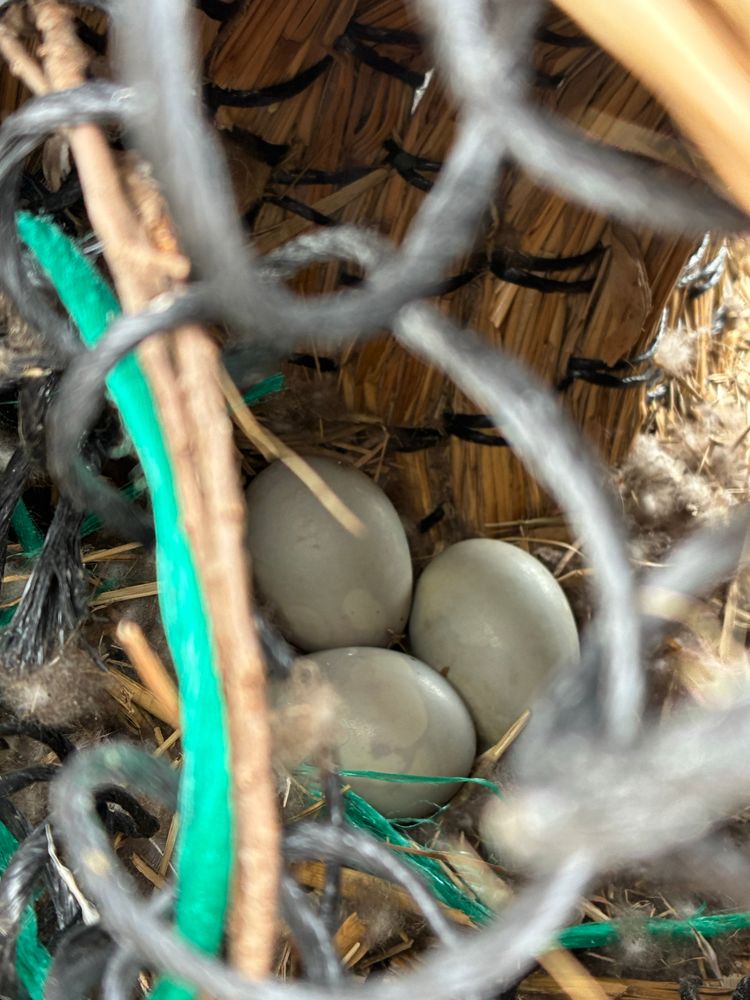 Spannend: Direkt neben unserer Terrasse liegt eine Art Korb-Reuse, in der vier Eier liegen (tendenziell von Blässhühnern). Sie wird leider nicht von den ansässigen Vögeln aufgesucht und ist auch verhältnismäßig hoch überm Wasser… da wird wohl eher nicht aktiv gebrütet.