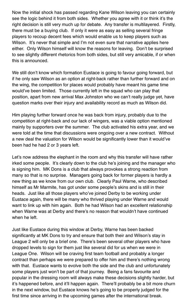 A few considered thoughts a few hours on from the news of Wilson (probably) going and the elephant in the room. #dcfcfans