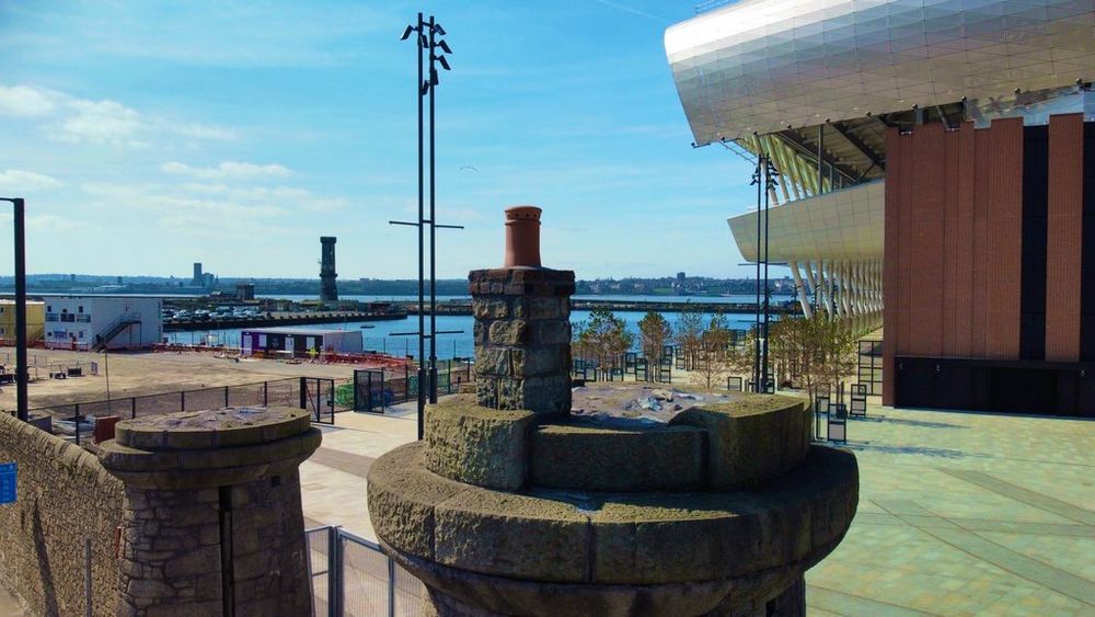 Everton Stadium alongside the River Mersey.