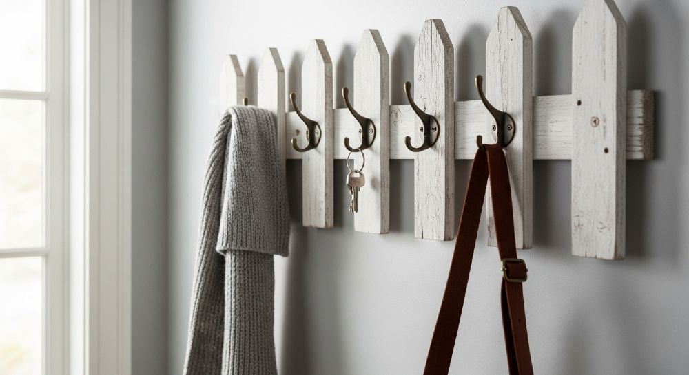 Don't toss that old fence! 👀 We turned a forgotten piece of wood into a stunning farmhouse coat rack. See the full transformation! 👇diydalias.com #DIY #Upcycling #HomeDecor #FarmhouseStyle #Woodworking