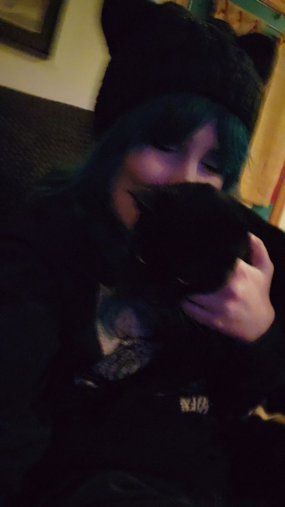 Just a girl with her black cat hat and her black cat 🖤