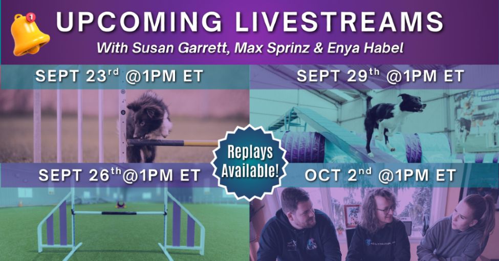 Join Agility World Champions Susan Garrett, Max Sprinz and Enya Habel TODAY October 13th at 1pm ET as we share insight into how we keep our motivation to train high and how you can too! 🤩