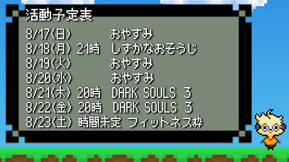 8月17日~8月23日の予定表です。