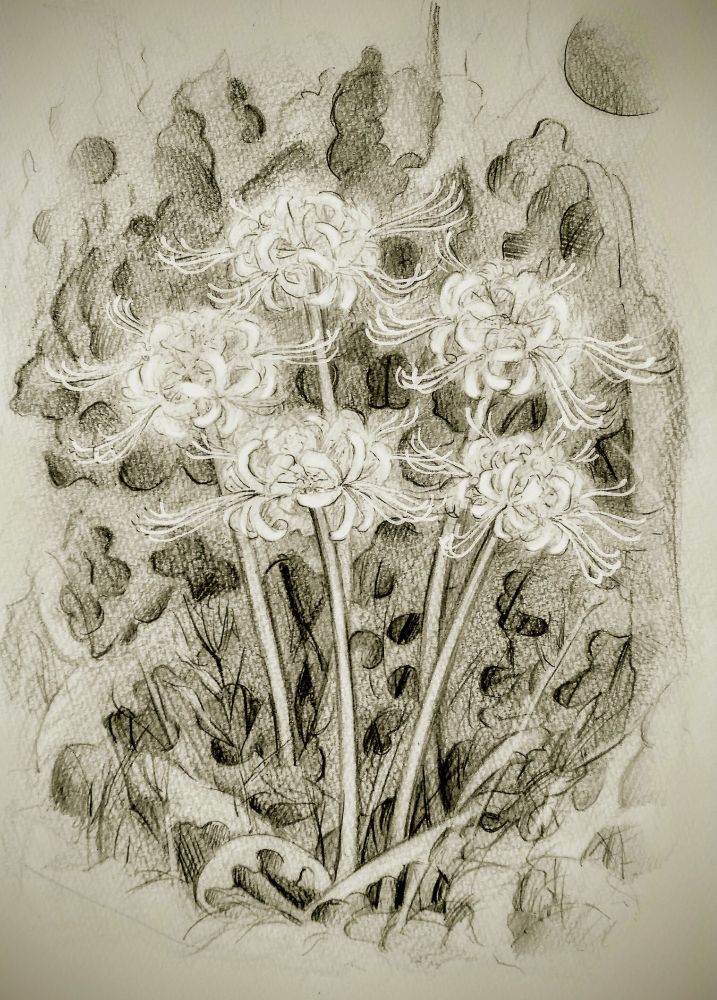 白い紙に白い花を描くには一工夫必要。