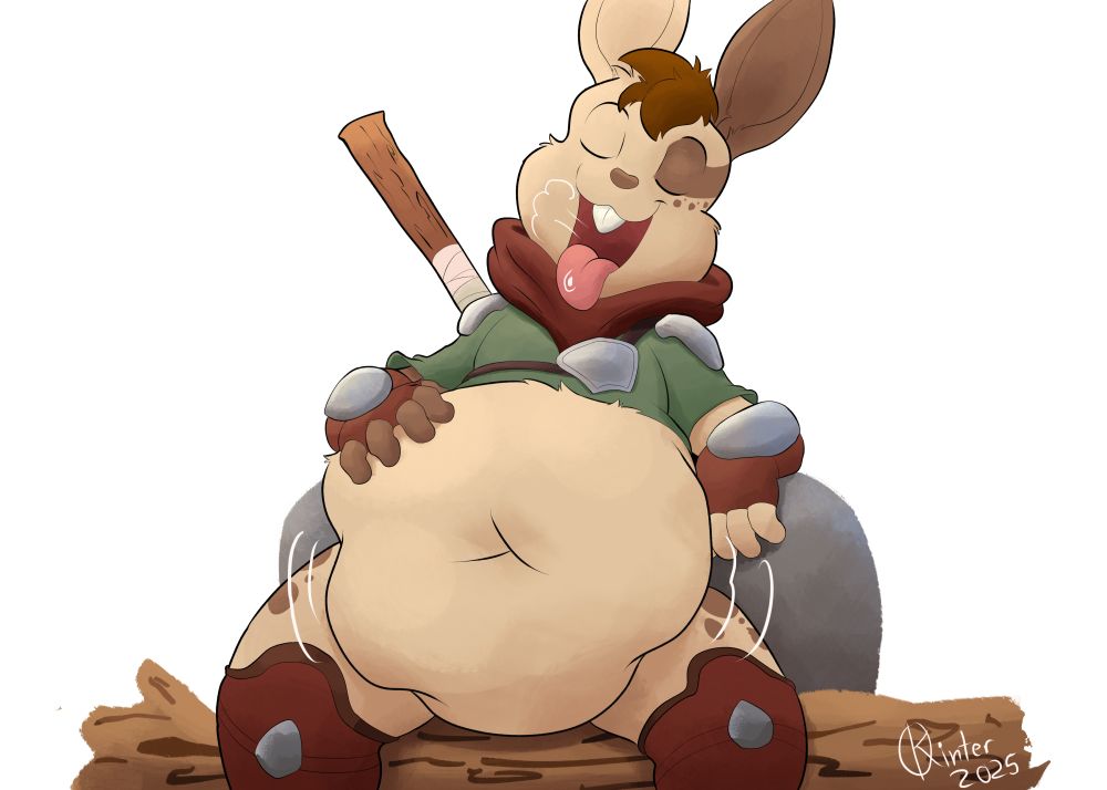 Piece of @fossekall.bsky.social showing @kieranwulf.bsky.social how to handle a full belly