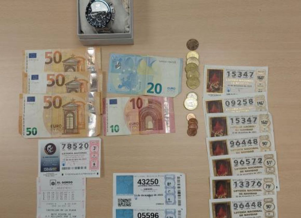 Entre los efectos intervenidos hay décimos de lotería, boletos de primitivas, un reloj y dinero en efectivo. La Guardia Civil también ha detenido a otras 2 personas por estafar 1.000 € a un anciano