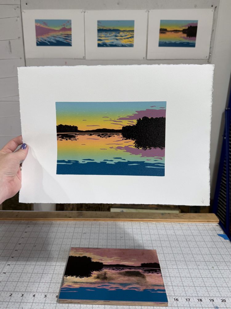 #printmaking #fineart #woodcut #sunset #water