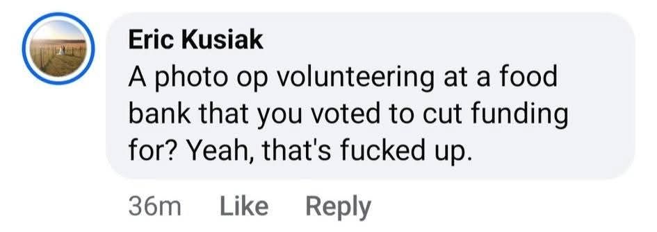 We raised $300 worth of groceries for people in our community facing hunger due to these SNAP cuts. We need leaders unafraid to take action immediately, vs. politicians who need their DC consultants to tell them what to say and think. This is an emergency and there's no time for politics.