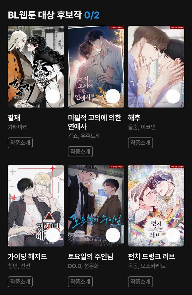 리디 어워즈 후보가 너무 쟁쟁해서 고르는 내내 고민 많이 했어요... 그냥 다 상 주면 안 돼? ㅎ