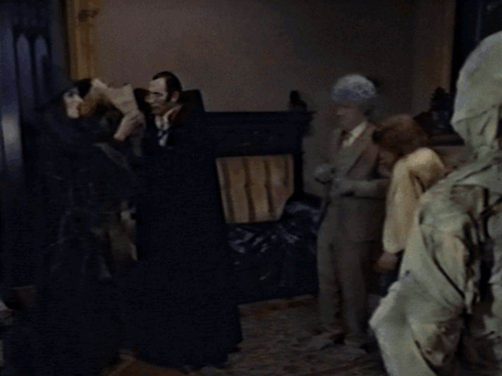 ALT: a group of people are standing in a dark room and one of them is wearing a hood