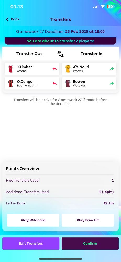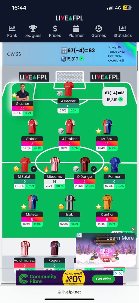Went with this for -4. Sad thing is last night Isak fell, Evanilson rose. So including my buy back of Isak in 31 I lost 0.3m here 🤣