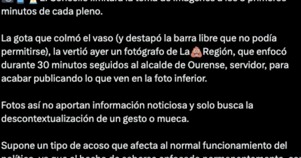 Impone la censura tras los primeros 5 minutos de los plenos alegando que las fotografías le consumen “recursos mentales” ↘ leer.laregion.es/sufk…