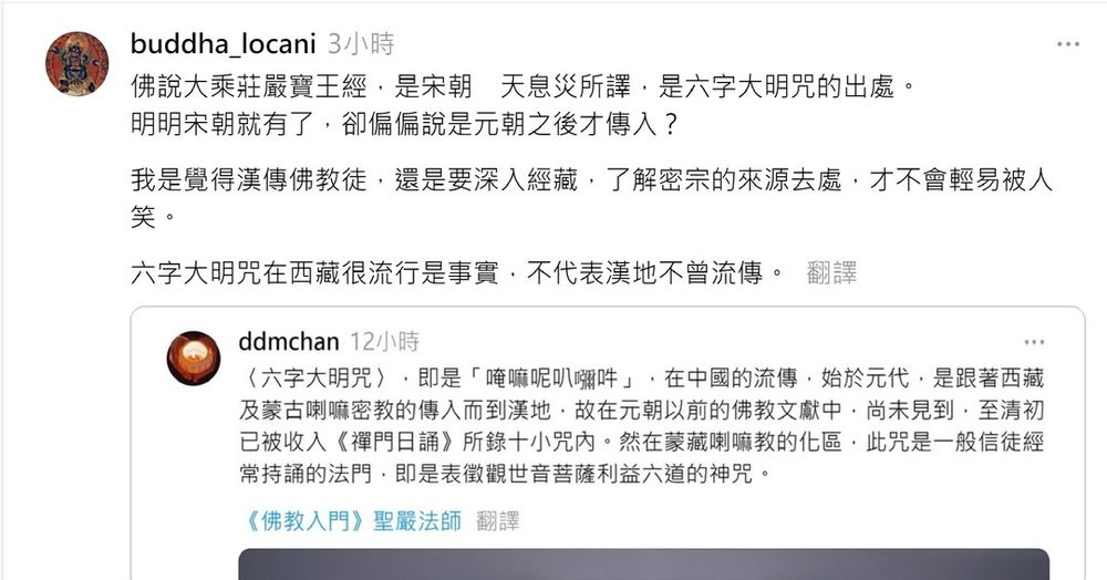 他可沒說元朝前沒六字大明咒的文獻。