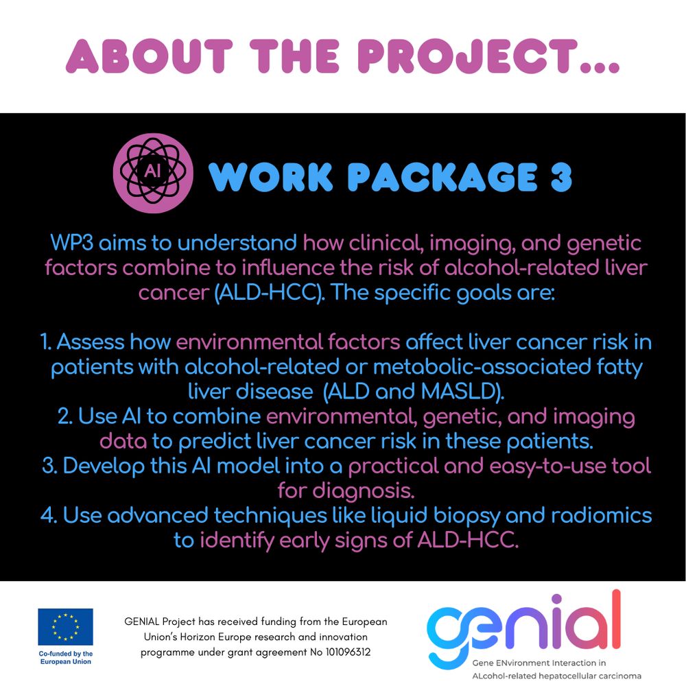 EU-funded initiative aiming to improve the early detection and understanding of alcohol-related liver cancer (ALD-HCC). GENIAL seeks to identify individual risk factors and enable precision prevention. Funded by Horizon Europe.