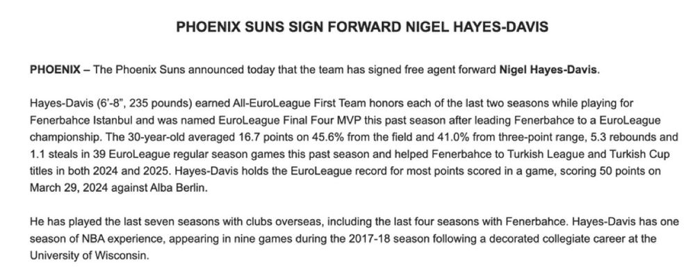 Officially official: Suns sign Nigel Hayes-Davis