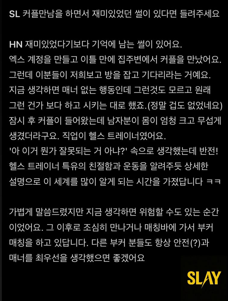 주로 관클에서 만나는걸 선호해요. 단계는 열려있으나 그날의 분위기가 더욱 중요합니다