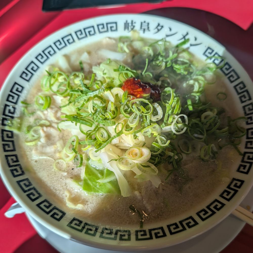 岐阜タンメン。野菜増量、ネギ増量、日射し強め。