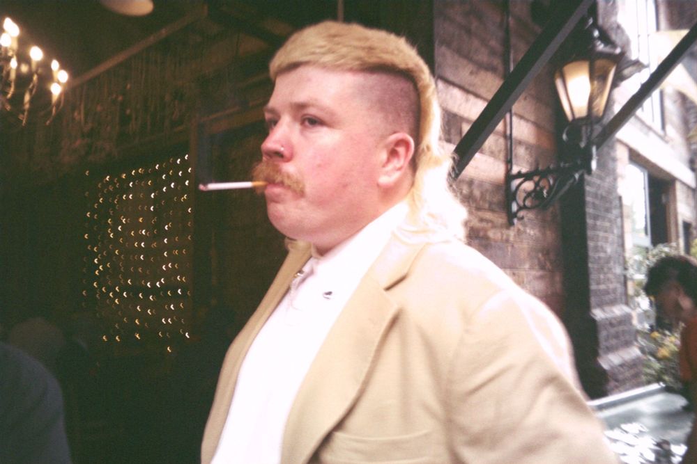 The glasses! The little blonde moustache! The hair!