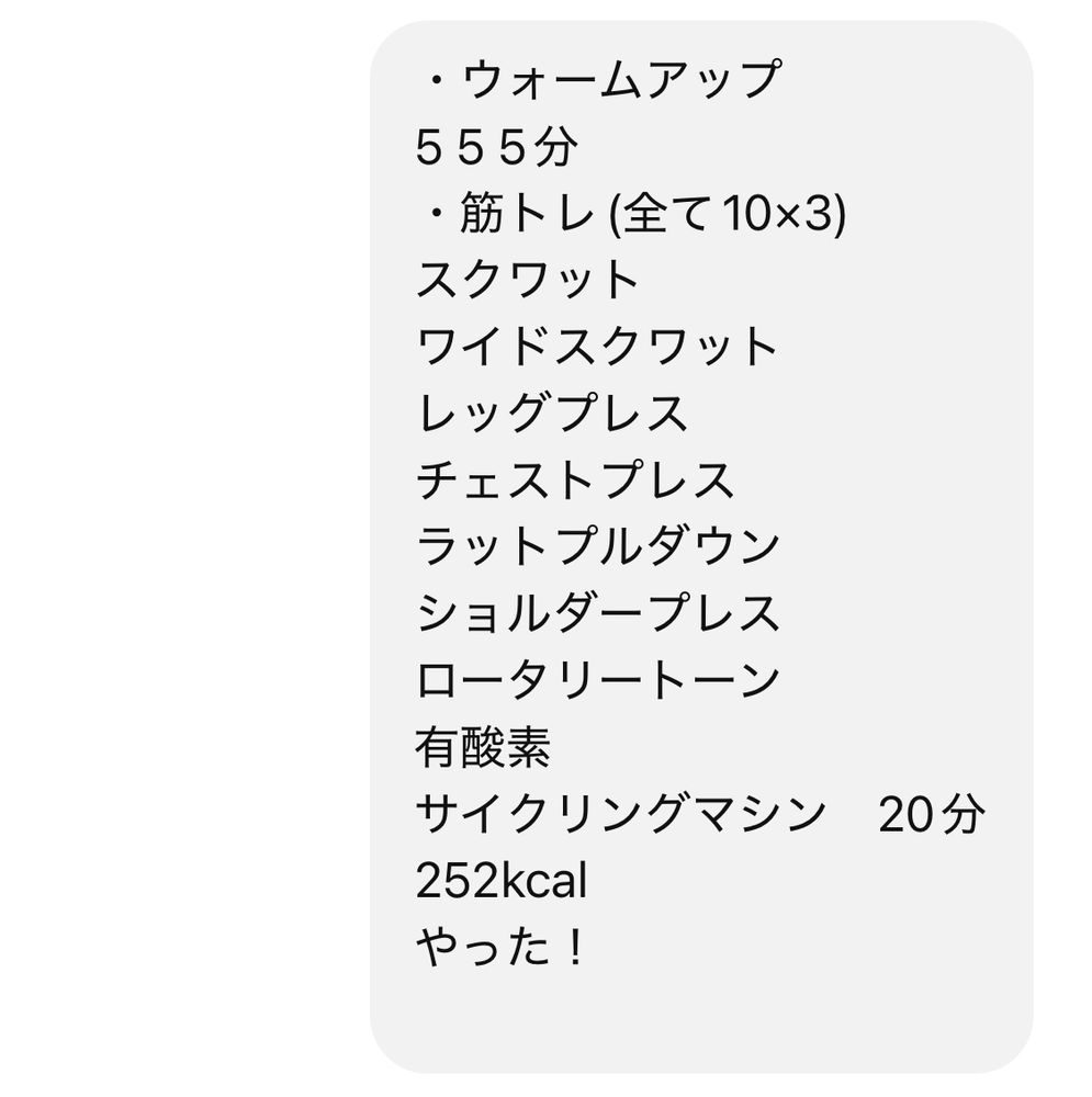ウォームアップはウォーキングマシン傾斜5 スピード5を5分