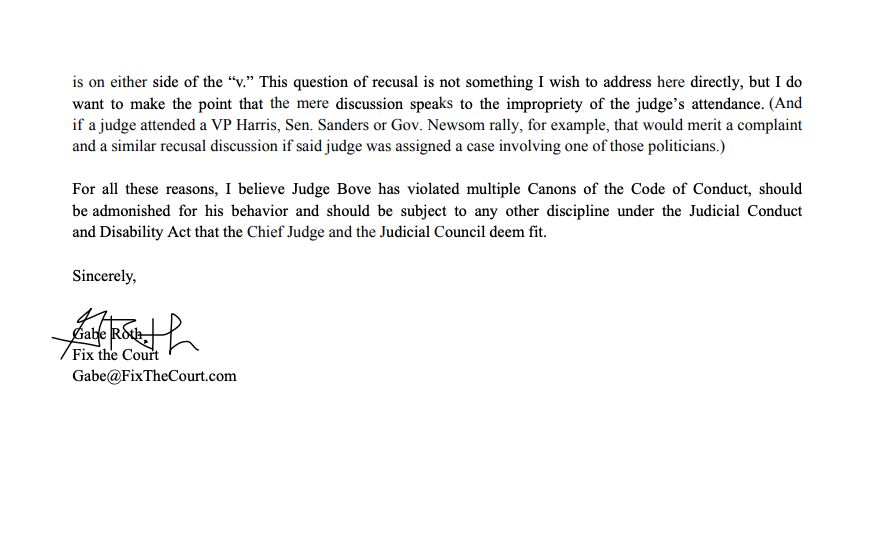 observers as to whether Judge Bove’s attendance imperils his impartiality"