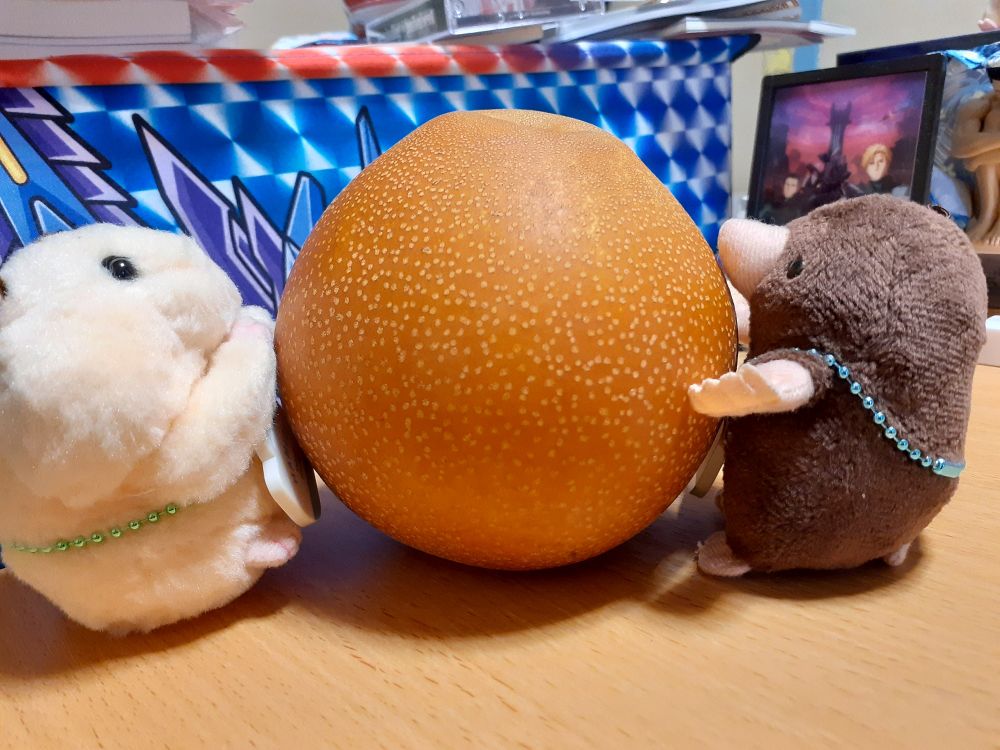 梨の上からの景色はどうだい、ハムもぐちびスミイサちゃん達。