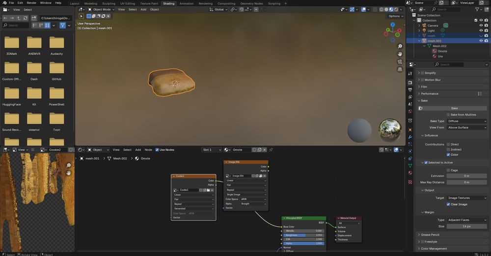 ベイク前はUVマッピングがおかしくて、一か所塗ると他も変になっていた。