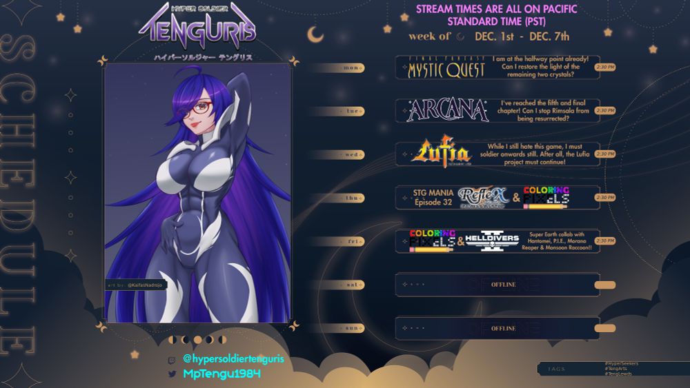 Finishing up FF: Mystic Quest and Arcana; Lufia: Ruins of Lore, Episode 32 of "STG Mania", Coloring Pixels, and more HELLDIVERS II with @hantomei.bsky.social, @researcherpie.bsky.social, @moranareaper.bsky.social and Monsoon Raccoon!