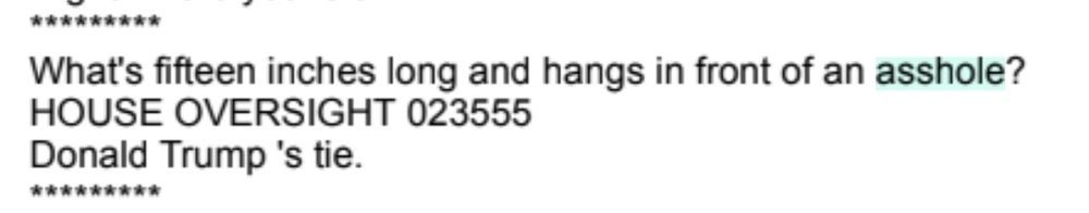 "What's 15 inches long and hangs in front of an asshole?