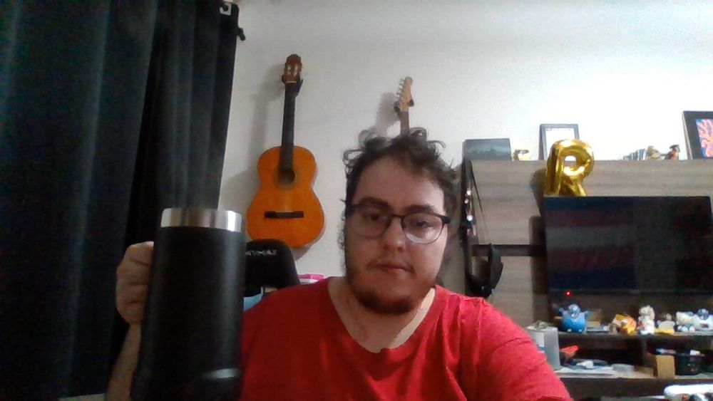 Rodrigo (eu mesmo) segurando objetos variados em fotos de webcam