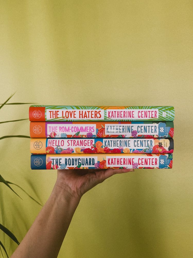 A cute lil stack of Katherine Center’s books. I love the flowers so much. 💐💙📚