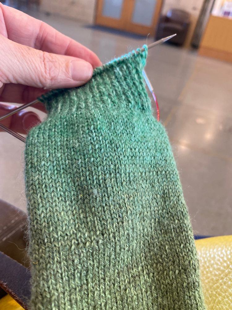 Walked to church and did a little knitting.