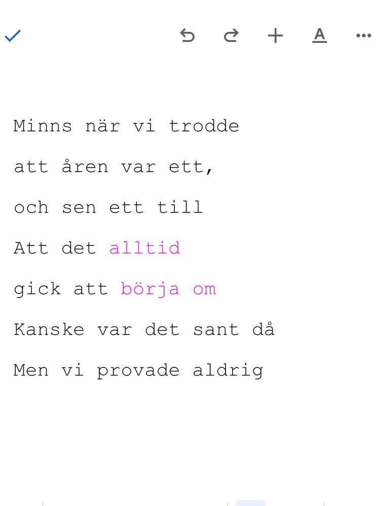 Slickar bort läpparnas bekännelse med kärlekens tunga och biter dig med tidens tand.