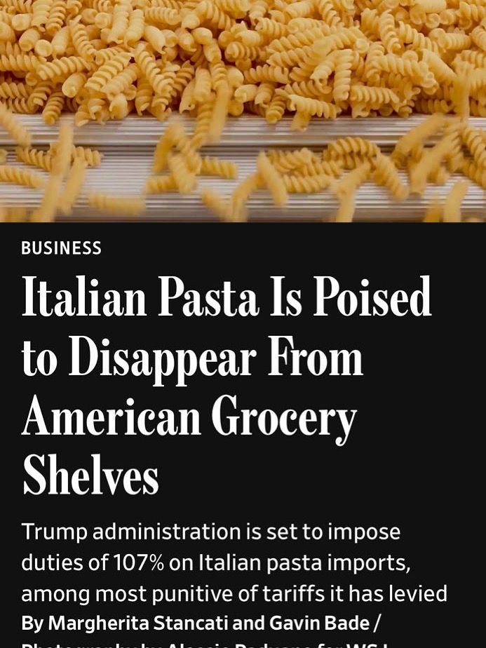 Italy’s biggest pasta exporters say Trump administration tariffs totaling 107% will make selling in America impossible and plan to pull out of U.S. stores by January.