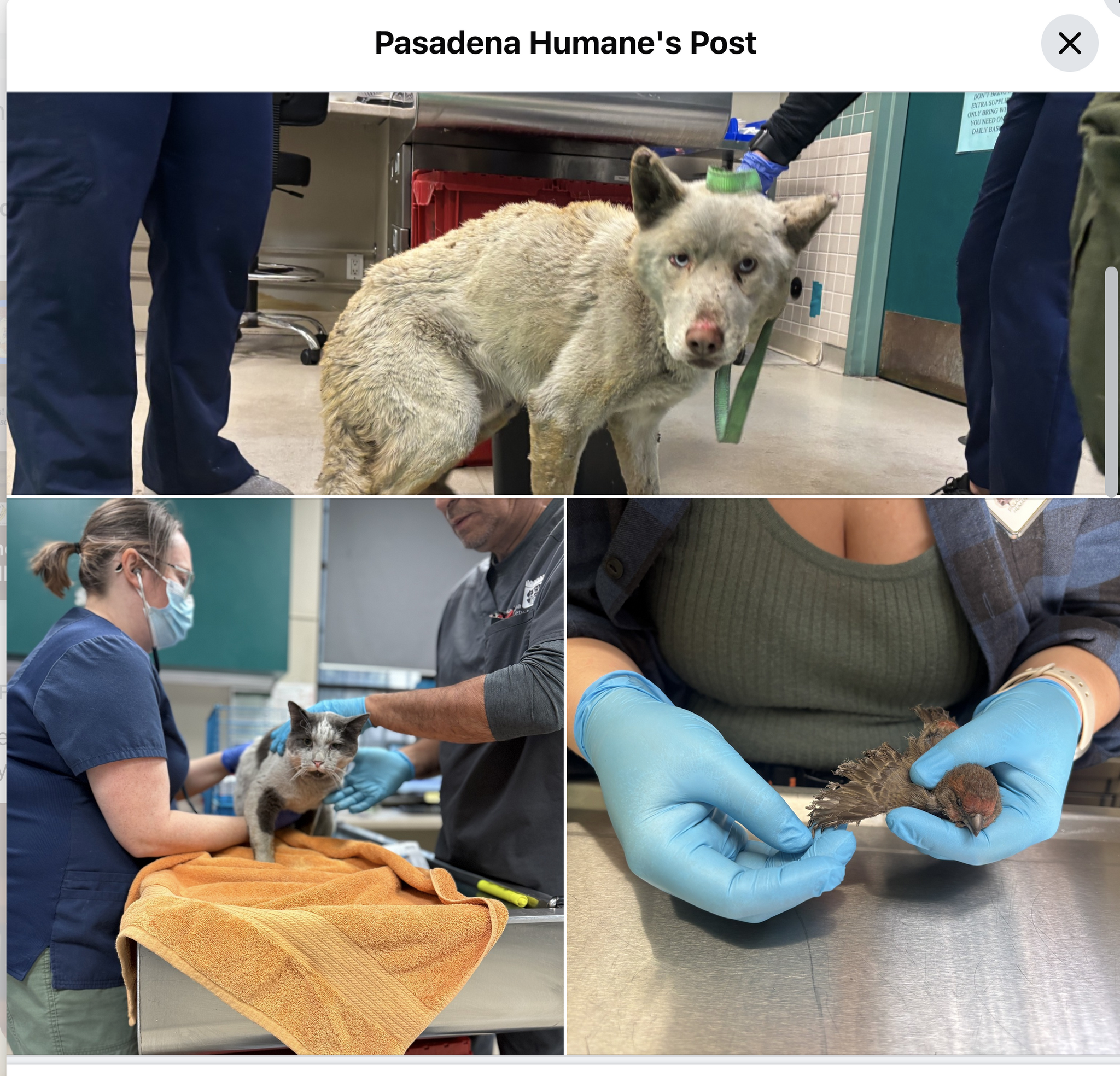 Countless animals have been affected by LA fires, too. In your giving, please consider donating to Pasadena Humane Society which has taken in over 400 animals. Monetary donations are urgently needed for emergency medical care: