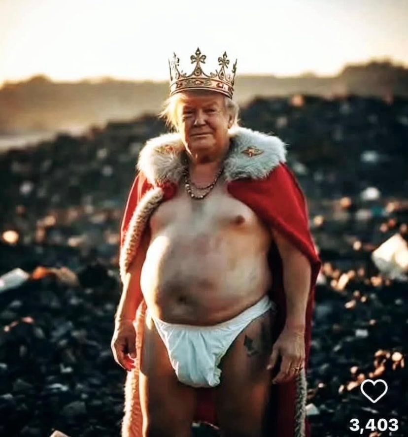 The first two are my first images of Widdle Donny in a diaper and an emperor's robe from 2016, used in Mockingbird Falls multiple times over the past 9 years. The third is the new AI meme going around.